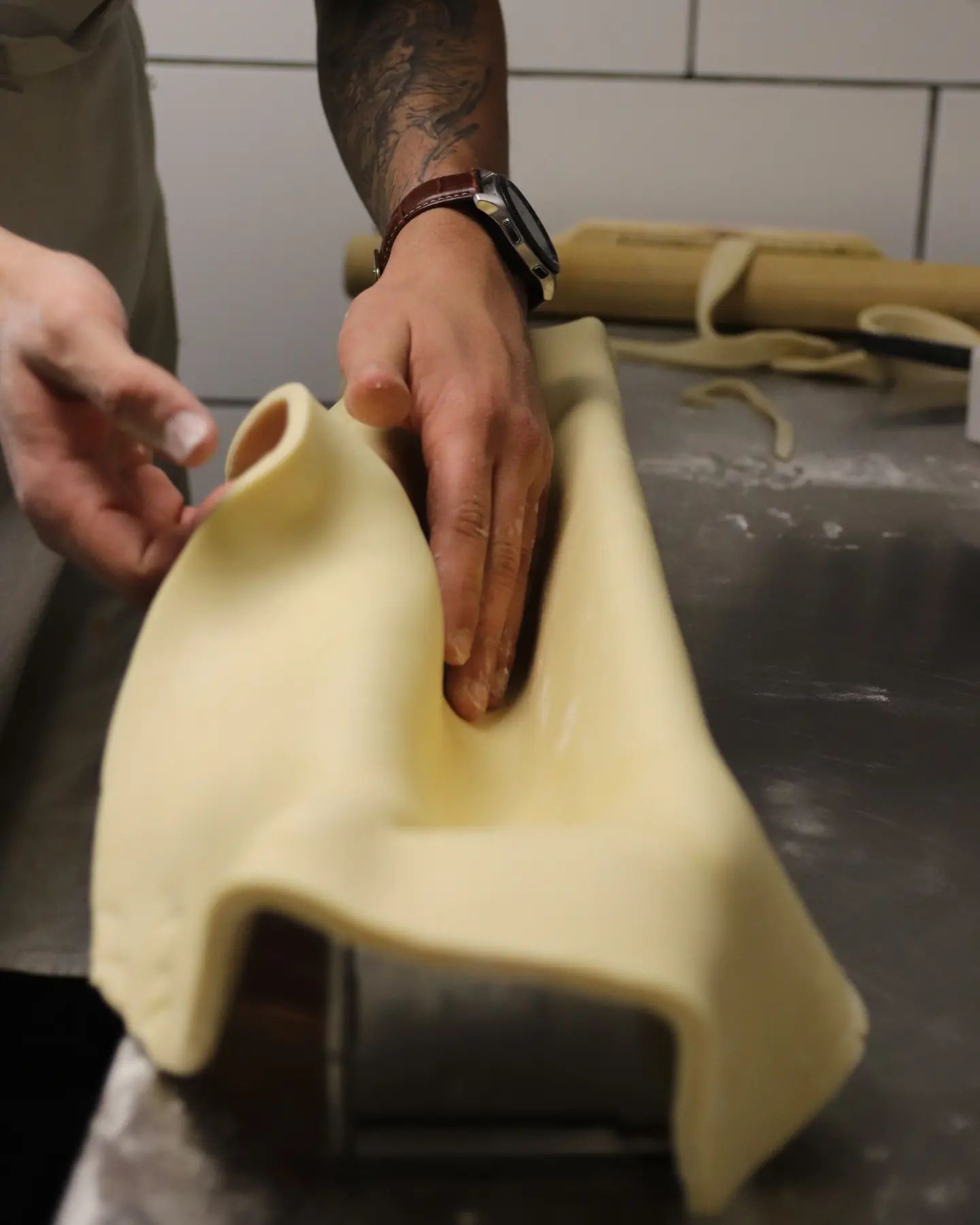 Il imagine les recettes et orchestre toute la partie laboratoire, de l’apéritif à l’entrée, jusqu’aux plats et aux fromages. C’est la main qui donne le ton de la maison.
